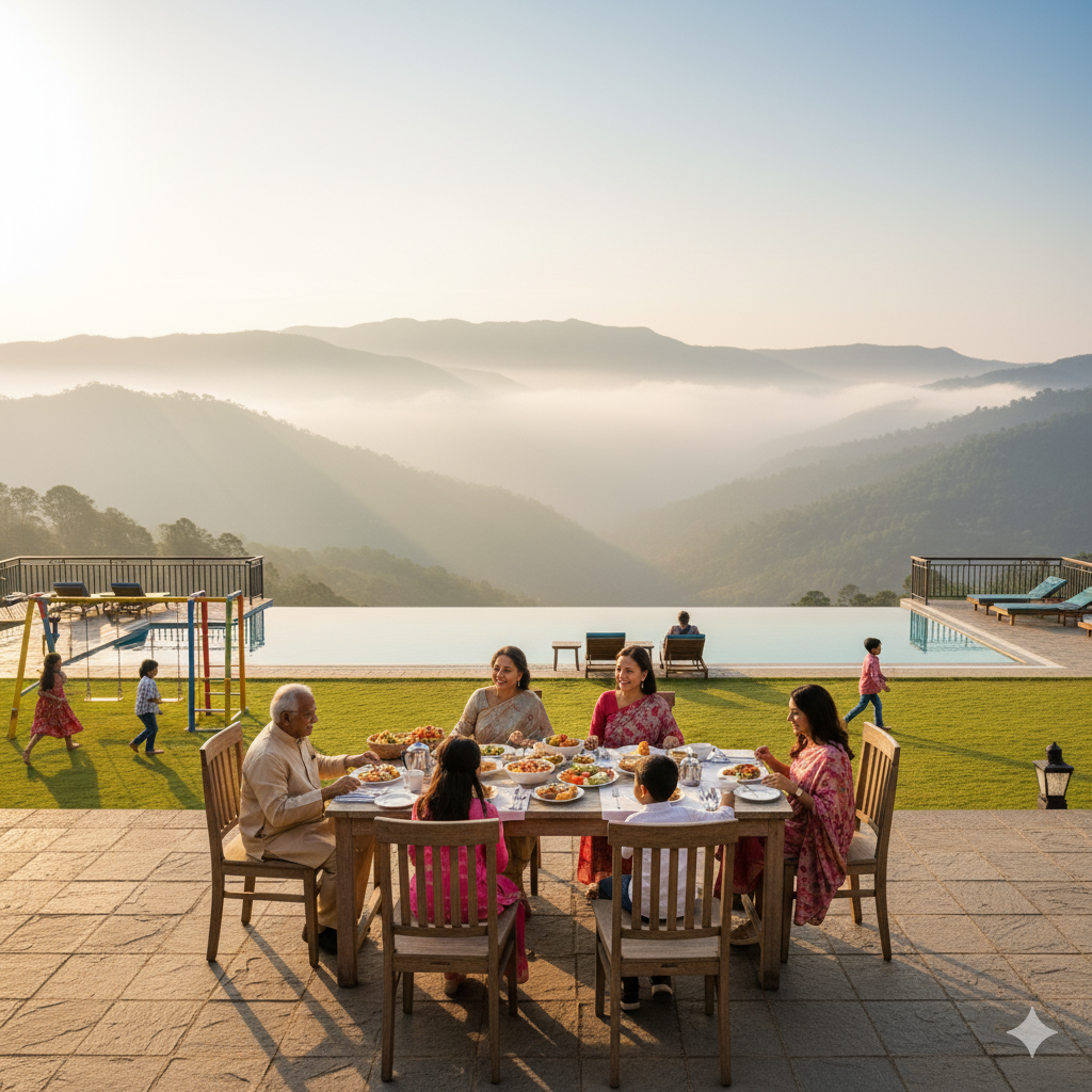 Ample Common Spaces: Large lawns, spacious dining areas, and inviting lounges offer plenty of room for families to gather, chat, and spend quality time together.